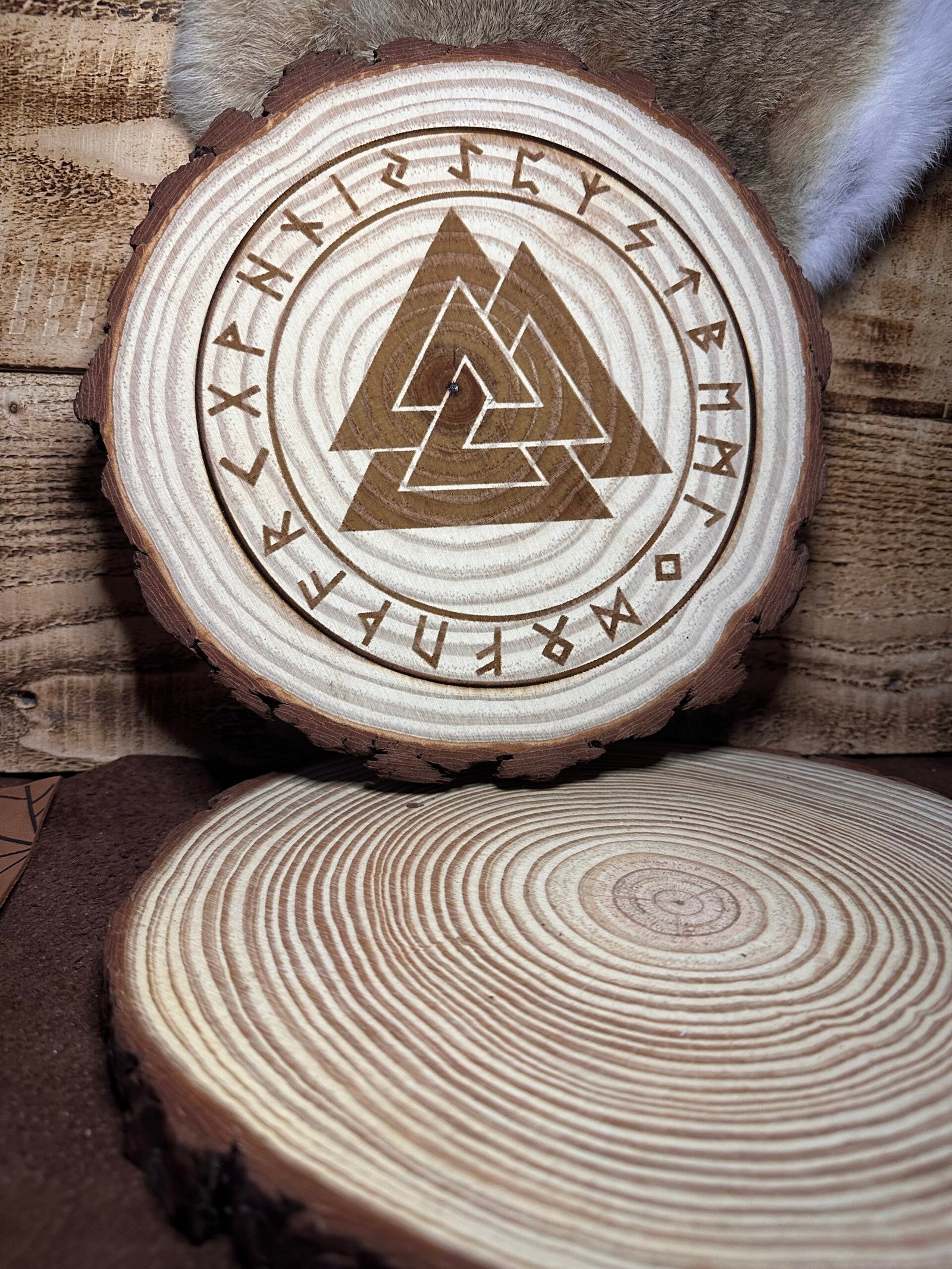 Base de Madera Ritual con Valknut y RunasBase de Madera Ritual con Valknut y Runas