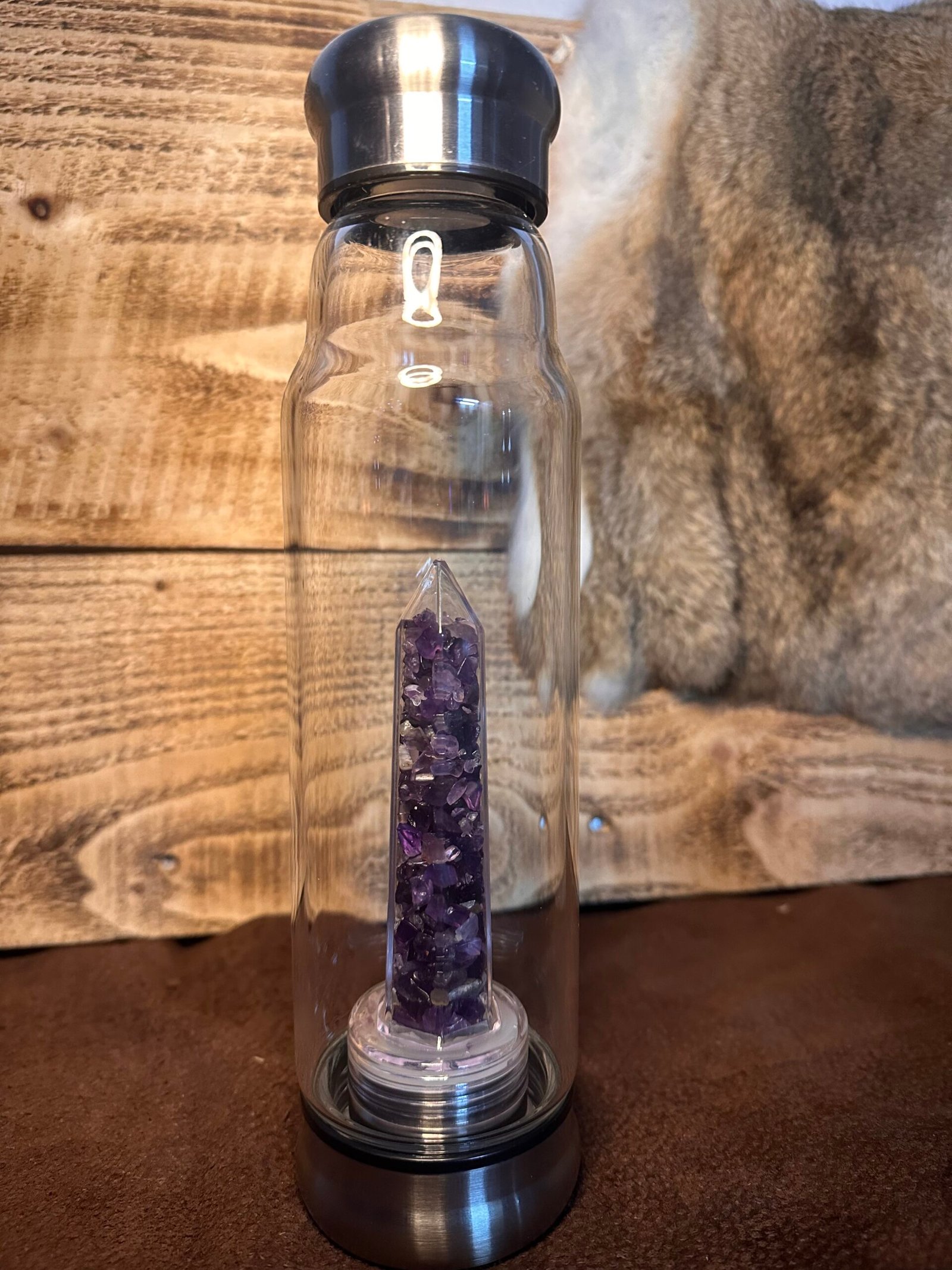 Material: Botella con minerales de amatista natural