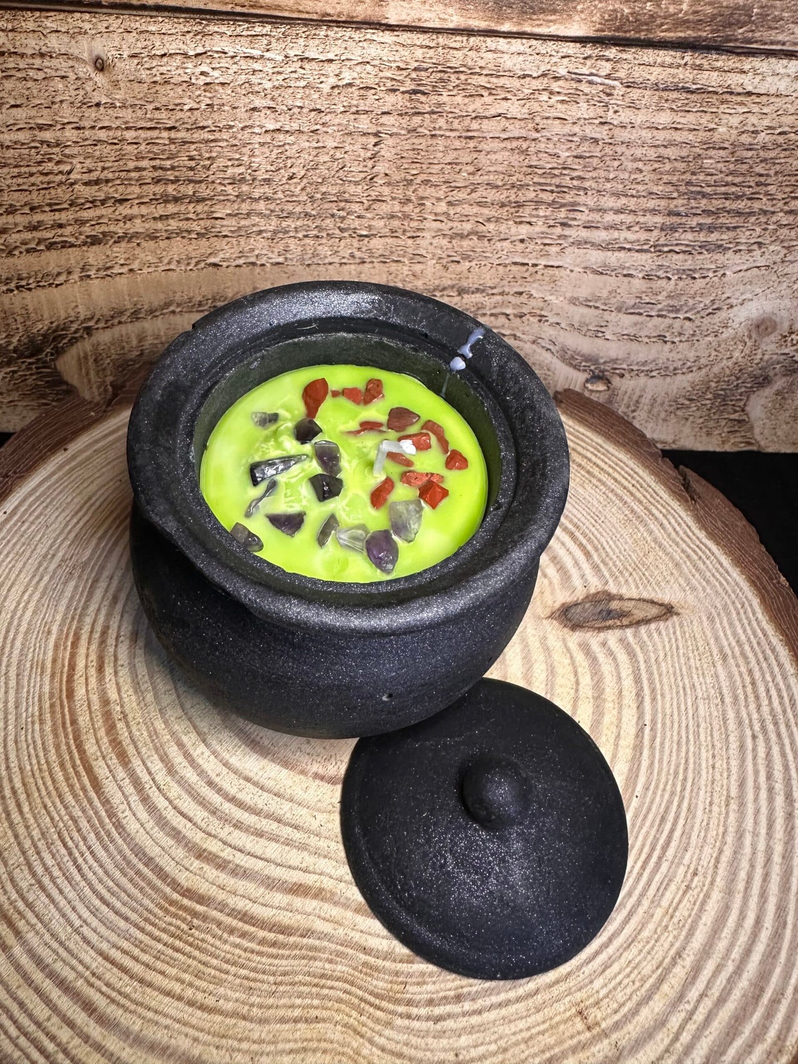 Todos los calderos mantienen la misma base y estructura, pero varían en color y minerales decorativos. Aun así, siempre recomiendo lo mismo: