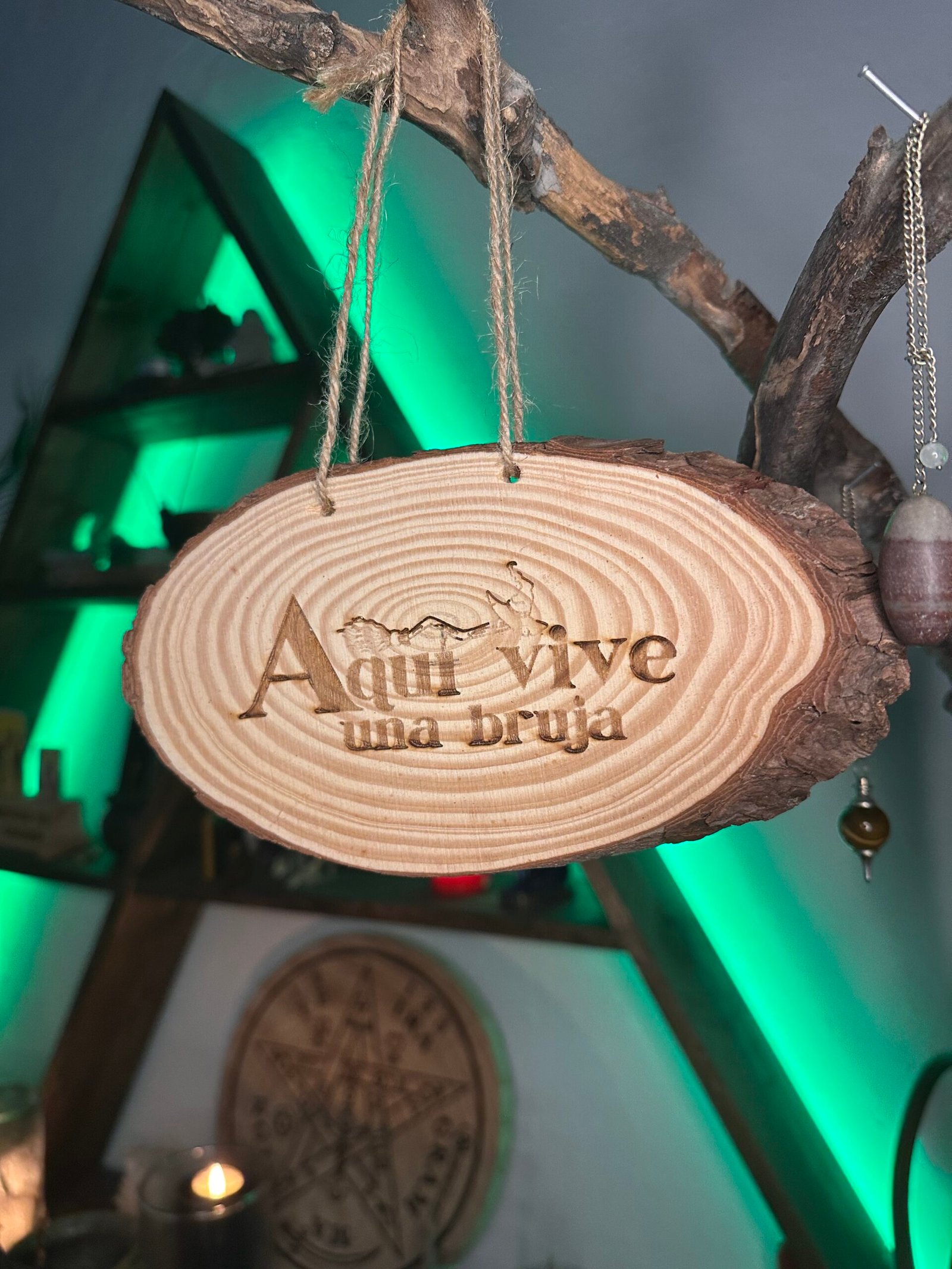 Fabricado en madera natural y con cuerda para colgarlo fácilmente, este cartel es ideal para hogares con alma bruja, espacios rituales o rincones personales donde la magia forma parte del día a día. También es una opción perfecta como regalo original y con carácter.