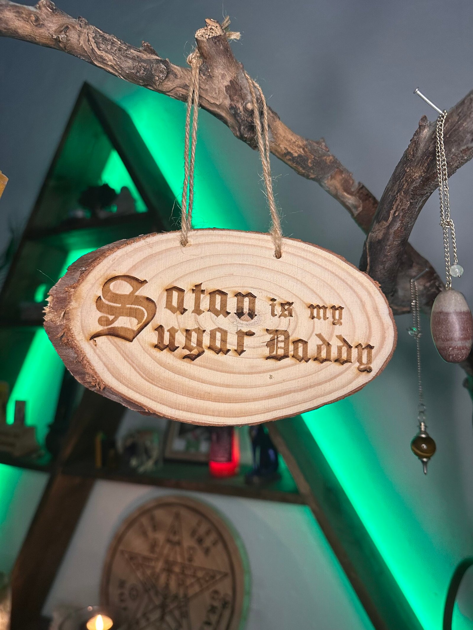 El Cartel de Bruja “Satan Is My Sugar Daddy” es una pieza decorativa provocadora y con humor oscuro, pensada para quienes disfrutan de la estética esotérica sin filtros ni solemnidad. Su mensaje irónico y descarado lo convierte en un elemento decorativo con personalidad propia y mucha actitud.