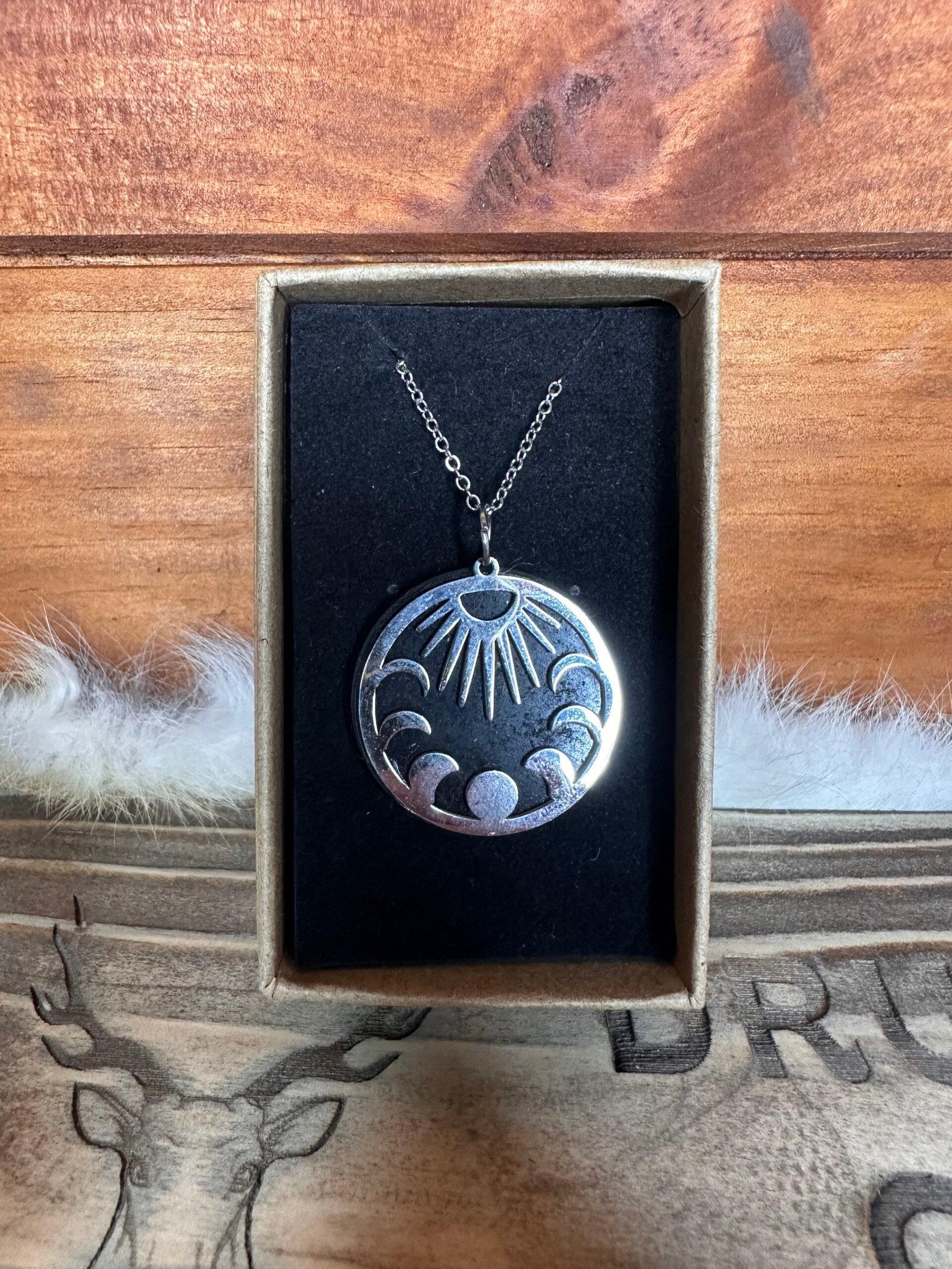 El Collar de Shungita con Fases Lunares es un amuleto de protección y conexión espiritual que une la potencia energética de la shungita con el simbolismo de los ciclos lunares. La shungita es un mineral reconocido por su capacidad para absorber energías negativas y proteger frente a cargas densas, mientras que las fases lunares en acero inoxidable representan el cambio, los ciclos naturales y la transformación constante.