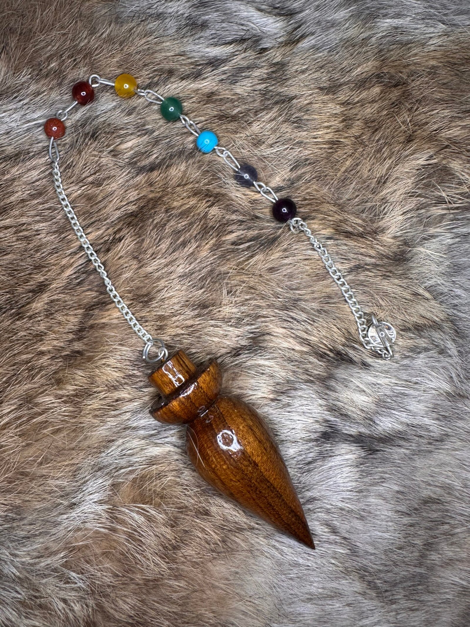 Péndulo de Madera con Cadena de 7 ChakrasPéndulo de Madera con Cadena de 7 Chakras